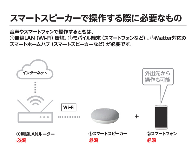 インターネット接続でスマートフォンやスマートスピーカーから操作可能。