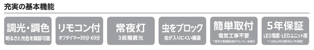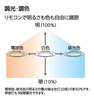 ・光色:電球色/2700K 〜昼光色/6500K(調光・調色)
