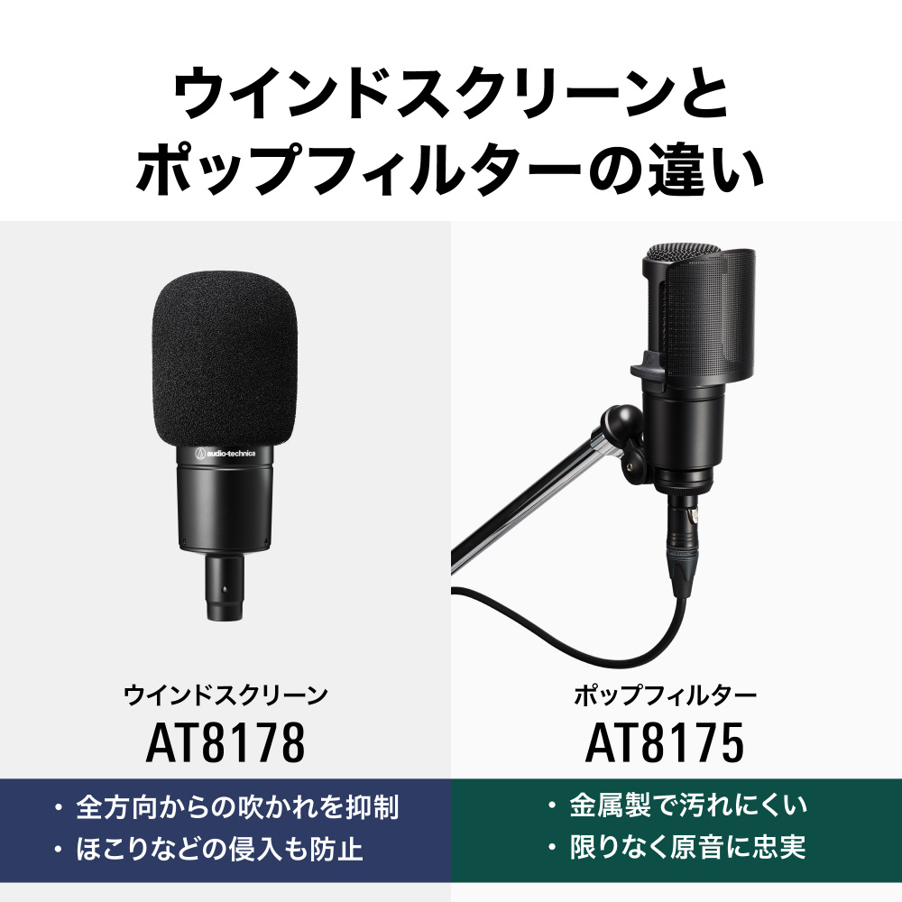 ポップノイズを低減し、的確なボーカル収音が可能なウインドスクリーン AT20シリーズ サイドアドレスマイク専用設計モデル