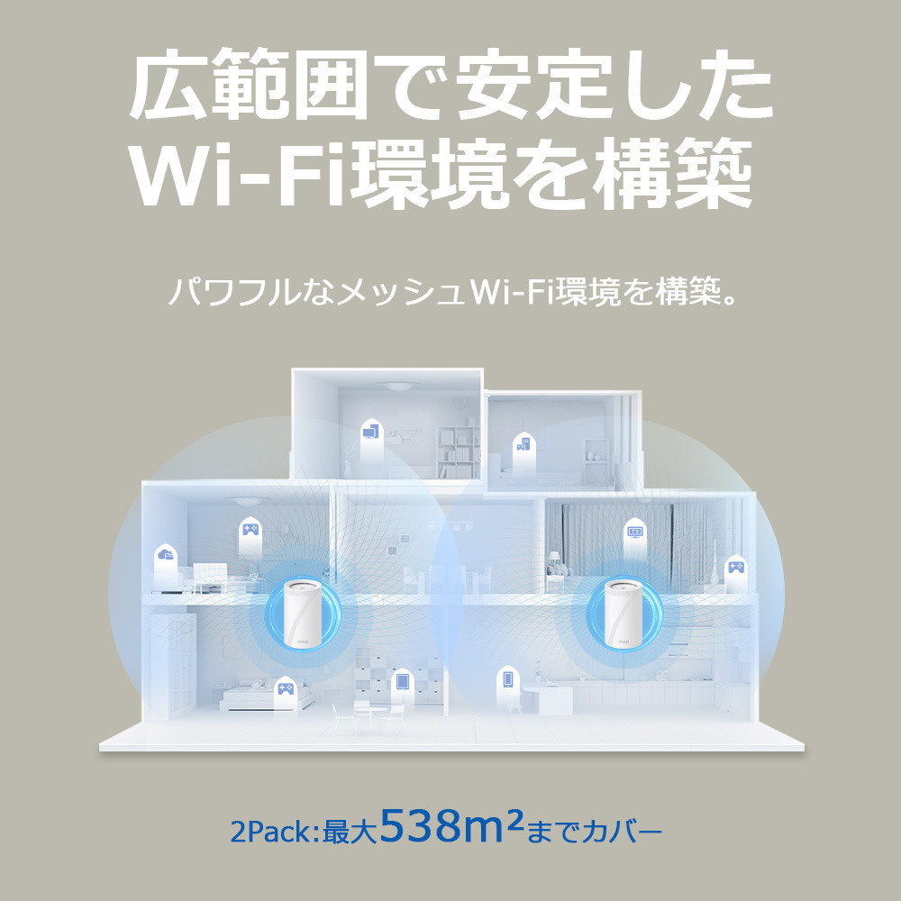 Wi-Fiルーター 5764+2882+688Mbps Deco BE65 Pro 2P(2パック) [Wi-Fi 7(be) /IPv6対応]