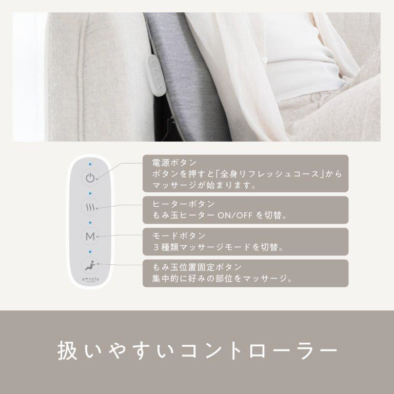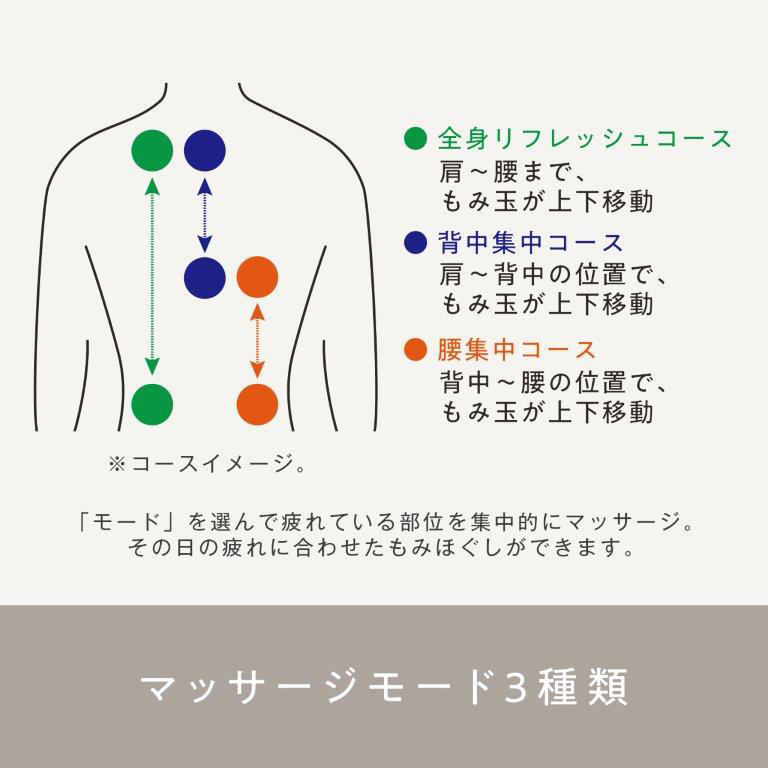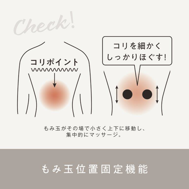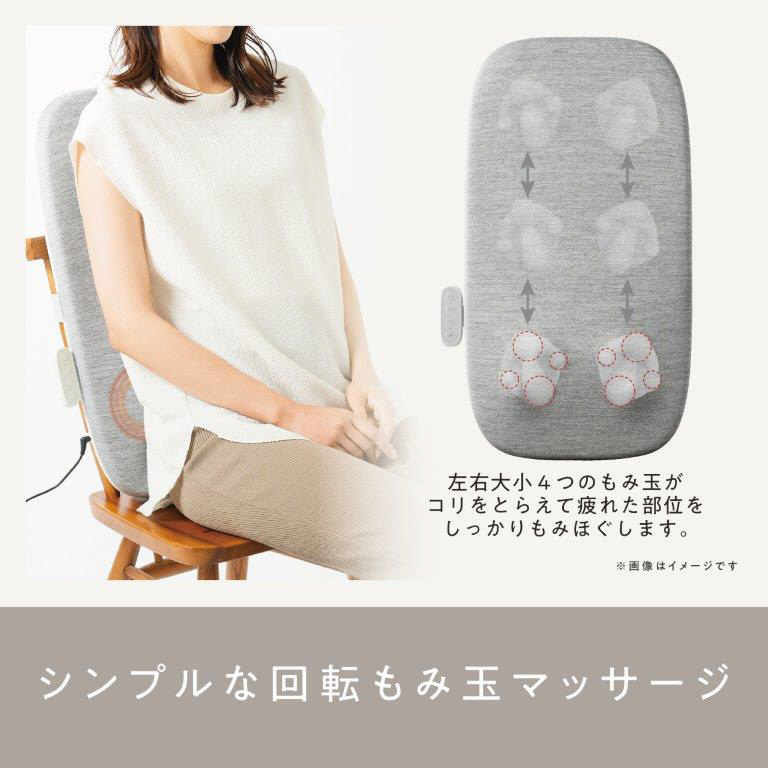大小4つのもみ玉が回転しながらコリを深く押しほぐし、背中全体を広く癒します。