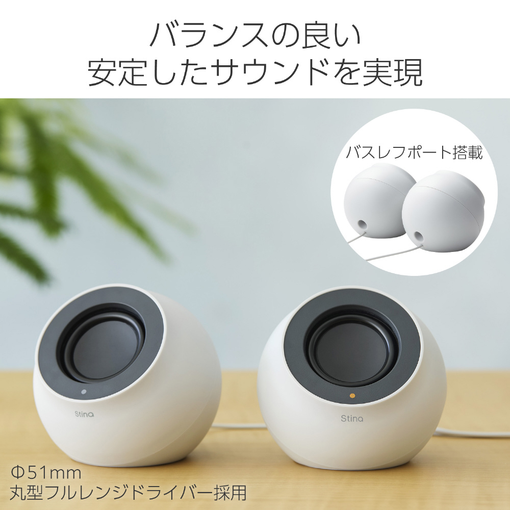 SP-P10CUSBWH PCスピーカー USB-C / USB-A接続 Stina(スティーナ) ホワイト [USB電源 /2.0ch]
