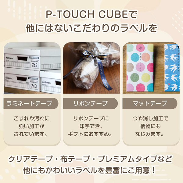 ラベルライター ピータッチ キューブ ラテ PT-P300BTLT (スマホ専用/3.5mm~12mm幅/TZeテープ) PT-P300BTLT