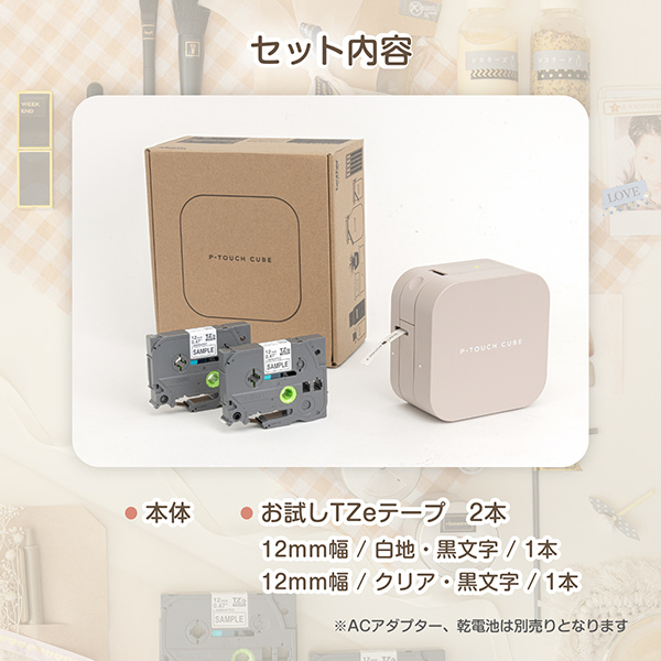 | 商品名 | ラベルライター ピータッチ キューブ ラテ PT-P300BTLT (スマホ専用/3.5mm~12mm幅/TZeテープ) PT-P300BTLT |