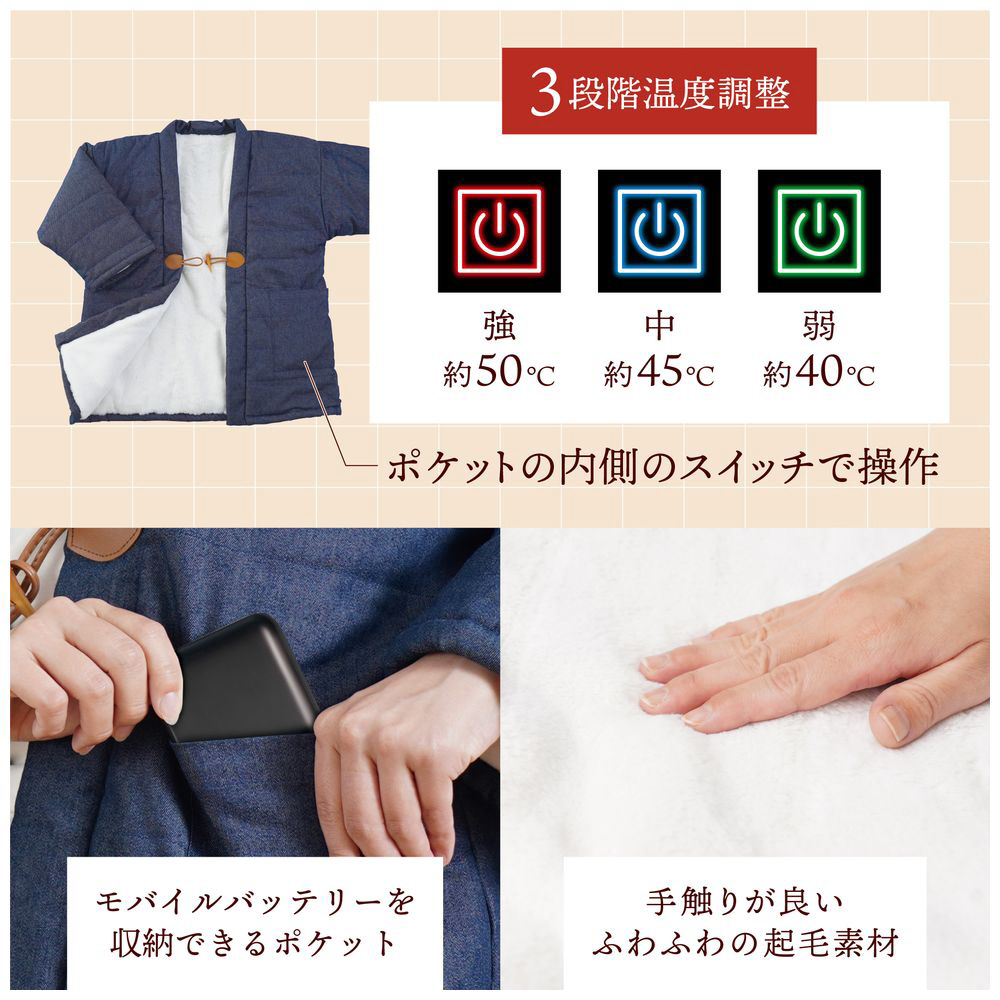 防寒+省エネ!電熱ヒーター内蔵半纏「ほかてんライト」