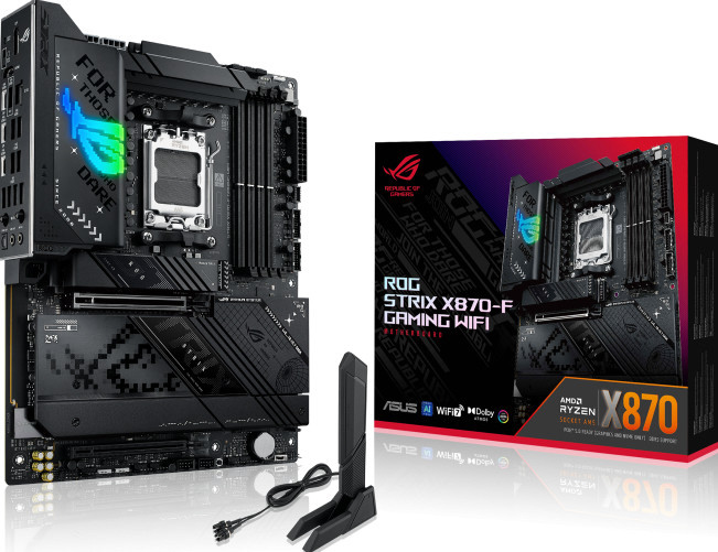 ROG Strix X870-F Gaming WiFiは、AMD Ryzen 9000シリーズデスクトッププロセッサと組み合わせて高いパフォーマンスを発揮するよう設計されています。高性能な電源設計とAIソリューションにより、AAAゲームや高性能なAI PCアプリケーションの要件を満たすために不可欠なパワーとスピードを提供します。デュアルUSB4ポート、WiFi 7、高速DDR5スロットが最先端の接続性を提供します。