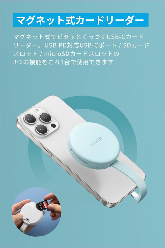 商品名 Anker MagGo USB-C カードリーダー (3-in-1 10Gbps For iPhone) グリーン A83D1N61