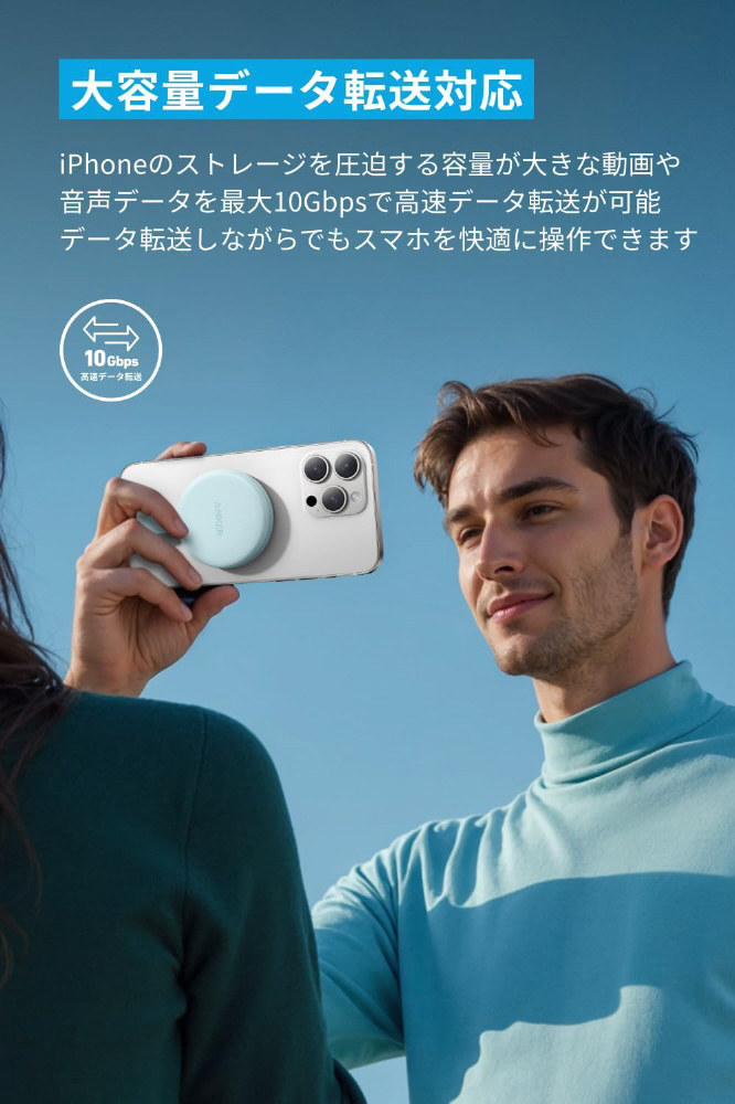 iPhoneのストレージを圧迫する容量が大きな動画や音声データを最大10Gbpsで高速データ転送が可能で、データ転送しながらでもスマホを快適に操作できます。