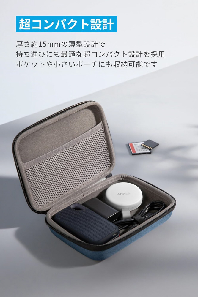 厚さ約15mmの薄型かつ持ち運びにも最適な超コンパクト設計を採用で、ポケットや小さいポーチにも収納可能です。