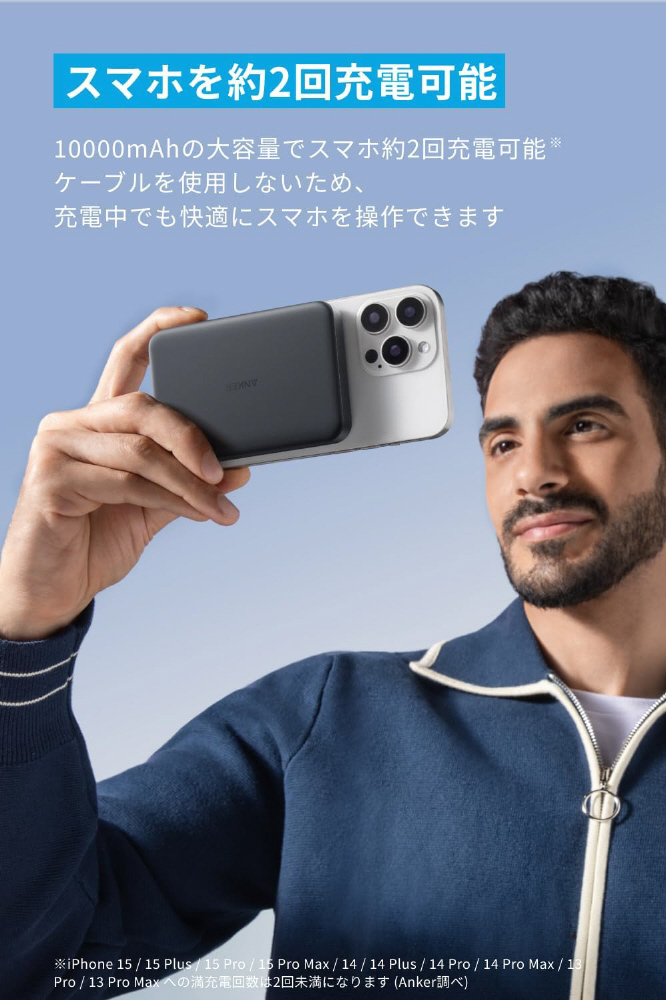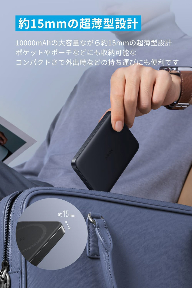 Anker MagGo Power Bank (10K Magnetic Wireless) ブラック A1664N11 [1ポート]