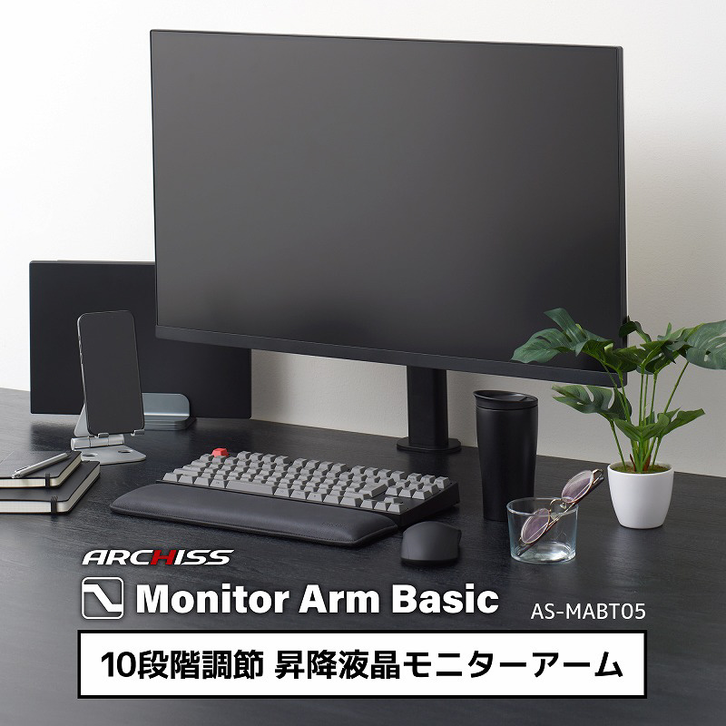 卓上モニタースタンド [1画面 /〜32インチ] Monitor Arm Basic 10段階調節 昇降 クランプ方式 / グロメット方式 ブラック AS-MABT05