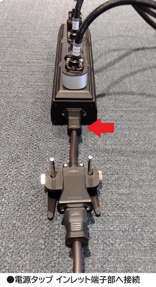 電源ケーブルからパワータップやオーディオ機器の間に挿入する形で使用することで、外部からのノイズ遮断だけではなく、電源部から外部へのノイズ拡散も防ぎ、クリーンな給電を行います。
