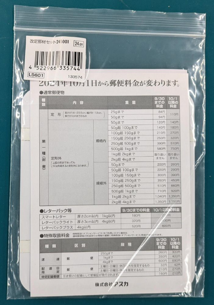 レタースケール LS601用 2024年10月料金対応改定部材セット