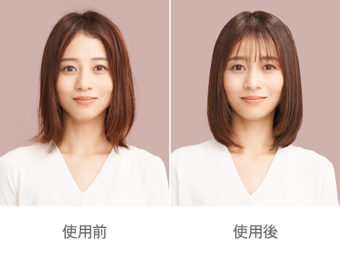 *乾いたストレートヘアに浮き毛抑制モードを使用した場合。
