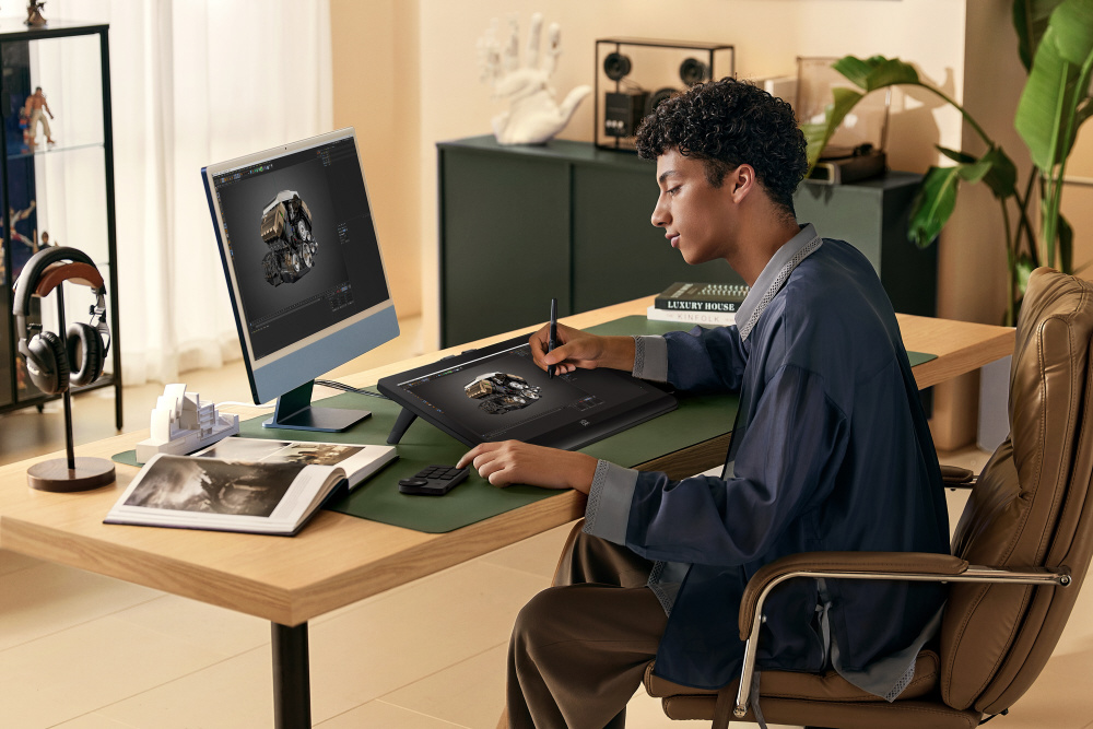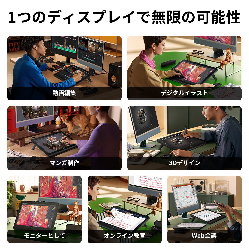 18.4型の4Kディスプレイを搭載し、2種類のスタイラスペンを付属した液晶タブレット