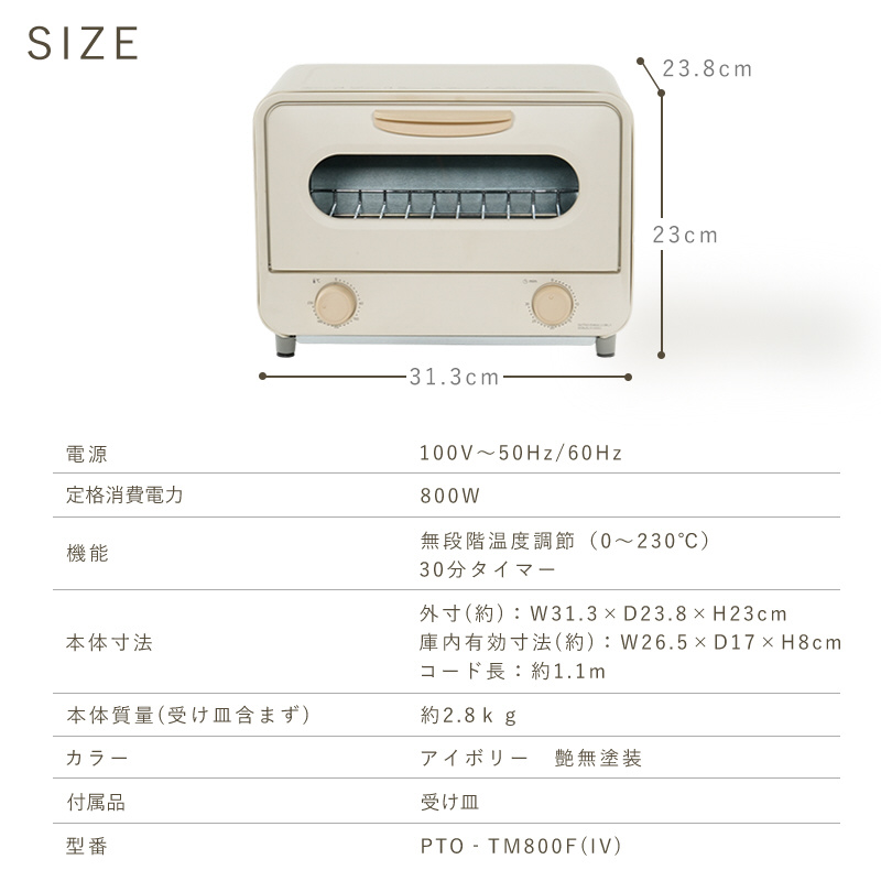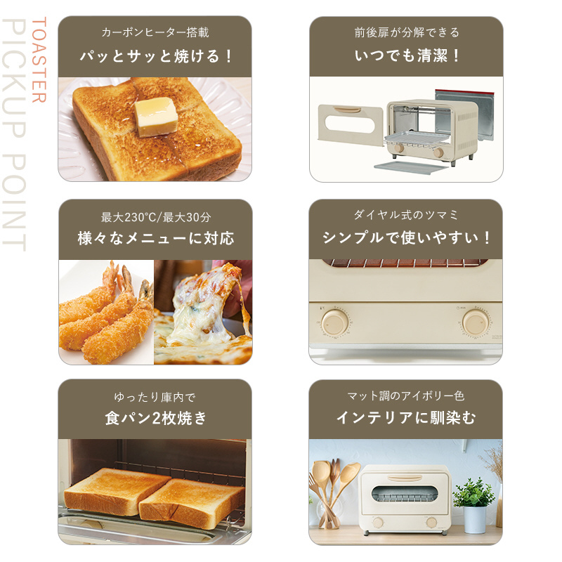 | 商品名 | カーボンヒーター搭載 お手入れ簡単分解2枚焼きトースター アイボリー PTO-TM800F(IV) |