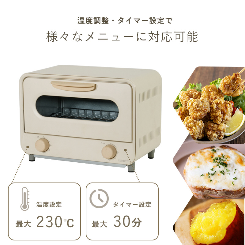 最大230℃・タイマー30分の様々なメニューに対応します。