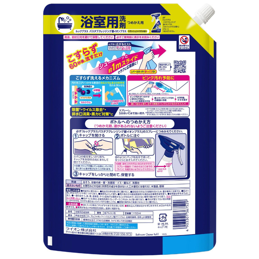 | 商品名 | ルックプラス バスタブクレンジング銀イオンプラス スカッシュシトラスの香り つめかえ用特大サイズ 1150mL スカッシュシトラスの香り |