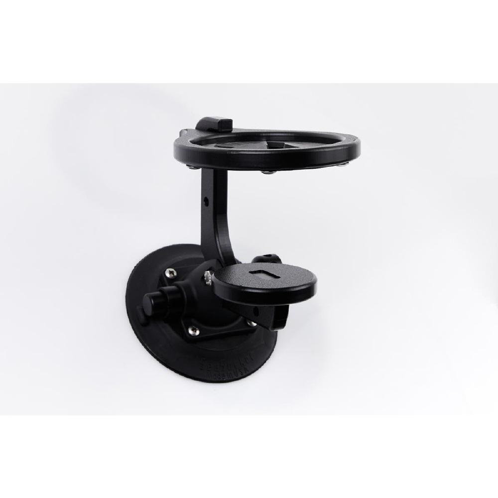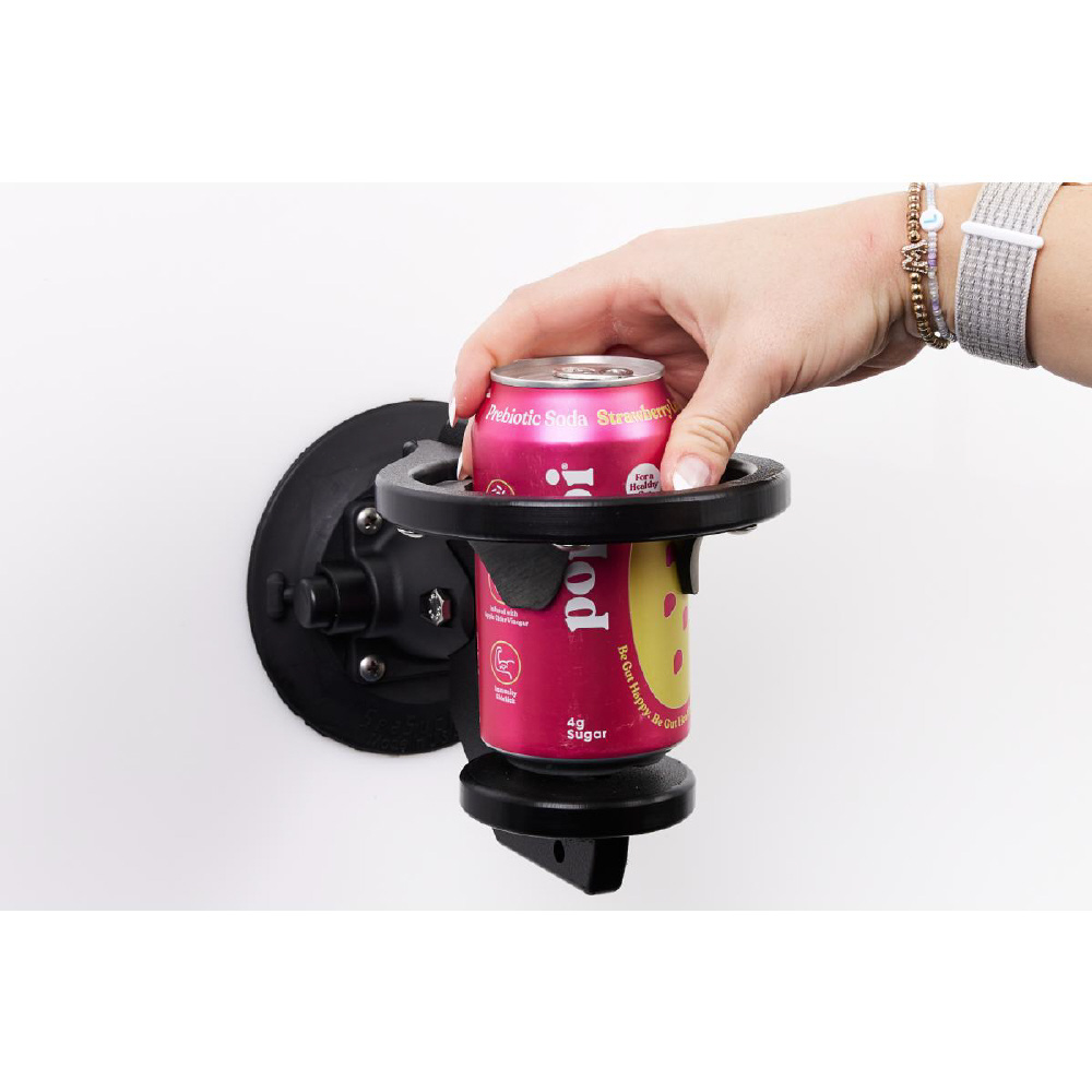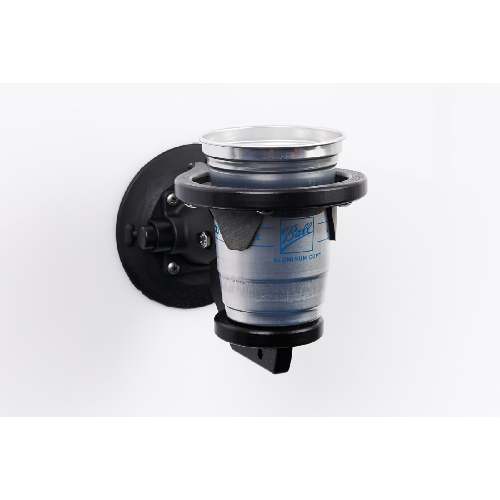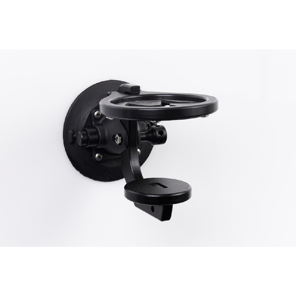 4インチの開口部にゴム製のストッパーが付いておりタンブラーやスリム缶、ペットボトルや紙コップなど様々なサイズの容器をホールドできる汎用性の高いカップホルダー。水平、垂直、斜め45度の位置に真空マウントを向けられ、面に装着が可能です。
