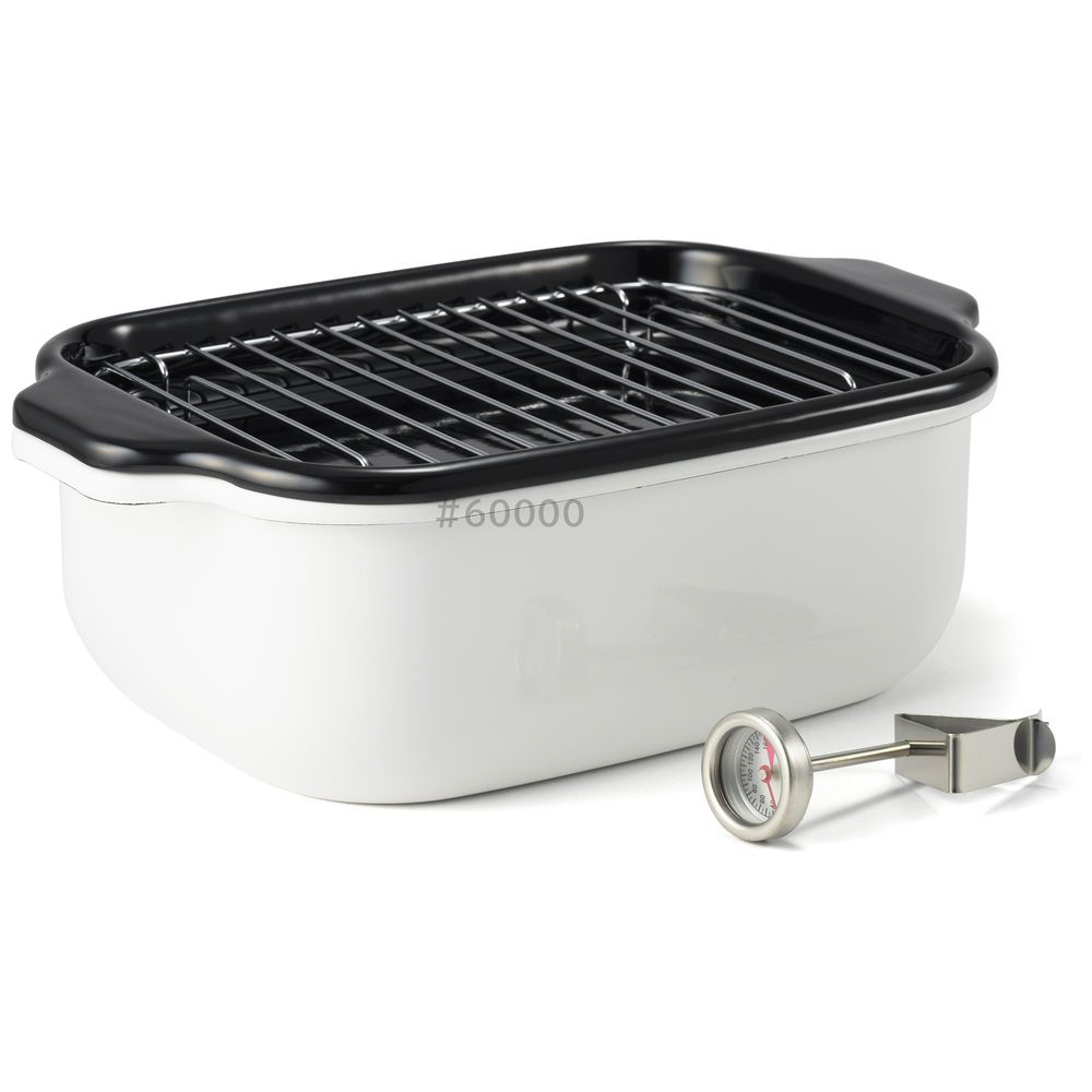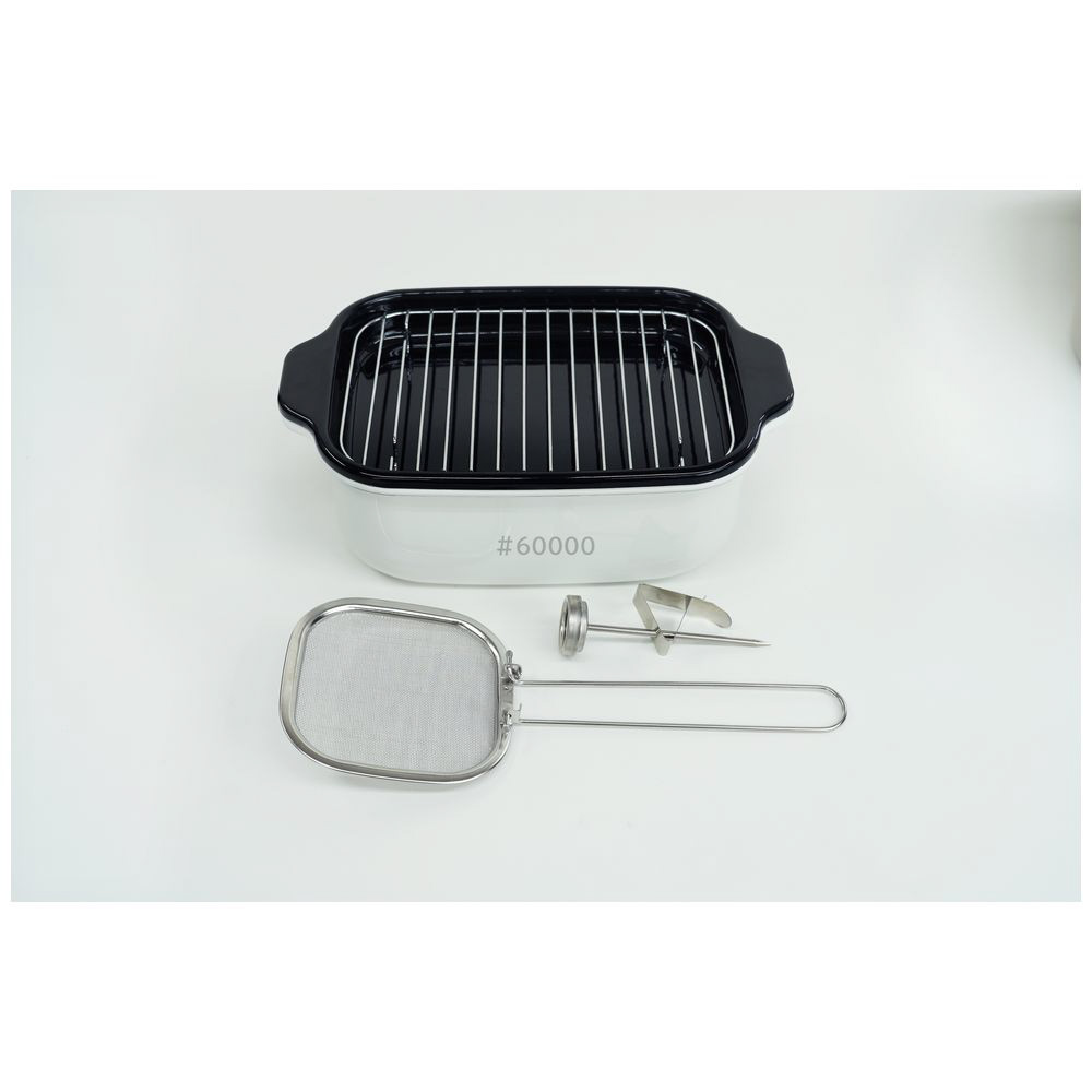 長方形で長い食材も揚げやすく、コンパクトでスリムで収納に便利な角型天ぷら鍋に少し大きくなったワイドサイズが新発売。たっぷり揚げ物をされるご家族にピッタリ。バット、スノコ、温度計付き。バットはオーブンディッシュとしても使えます。