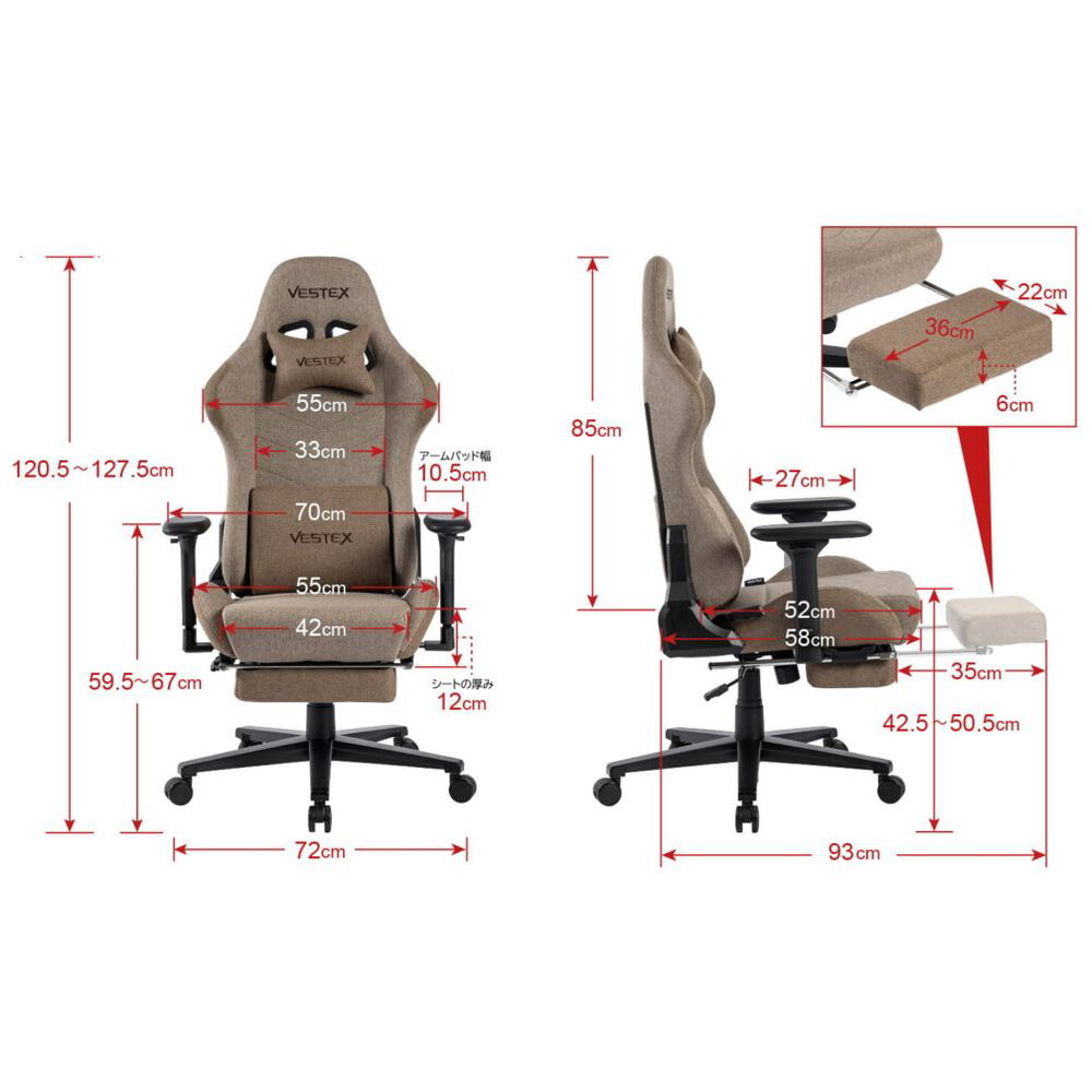 VES-S1FTBK ゲーミングチェア [W720xD720xH1205〜1275mm] VESTEX S1FTシリーズ(フットレスト付き) ブラック 【sof001】