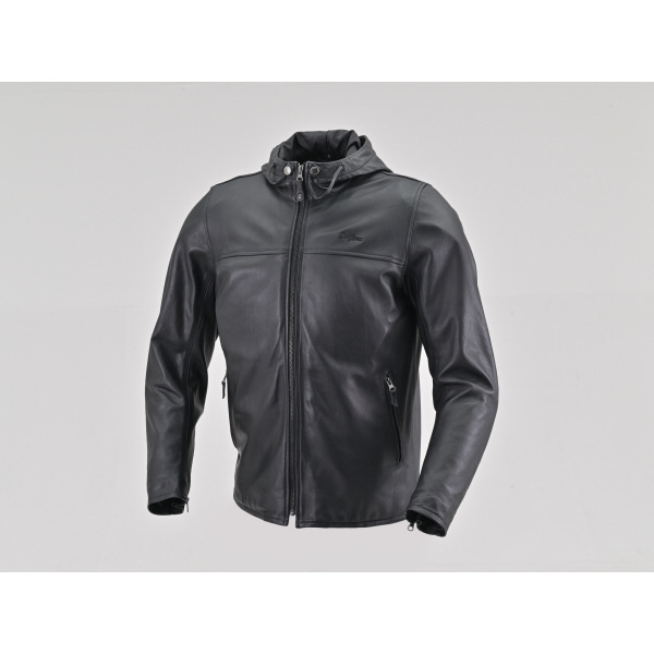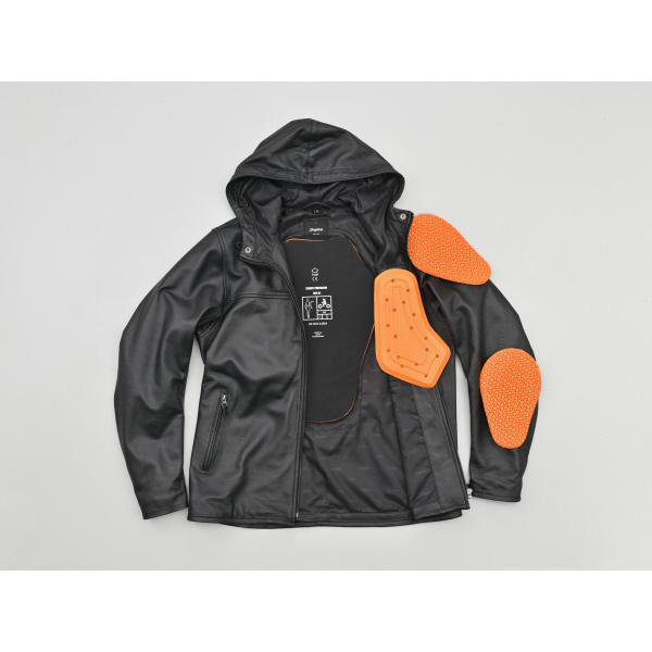 ●CEプロテクターフル装備。しなやかシープスキン、フーディレザージャケット