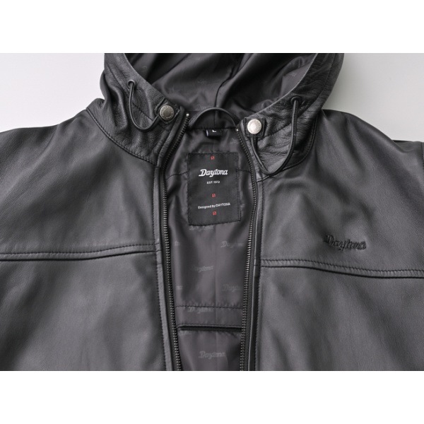 しなやかなシープスキンを採用した着心地のよいフーディレザージャケット。