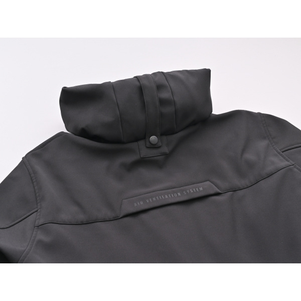 着心地の良い防風のソフトシェル生地は高い保温性を発揮。