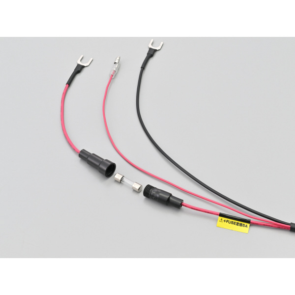 ■商品構成:ユニット本体 ×1、ハーネス(ミニガラス管ヒューズ Φ5.2×20mm/250V 5A)×1、両面テープ ×1、結線コネクター ×1、結束バンド ×2