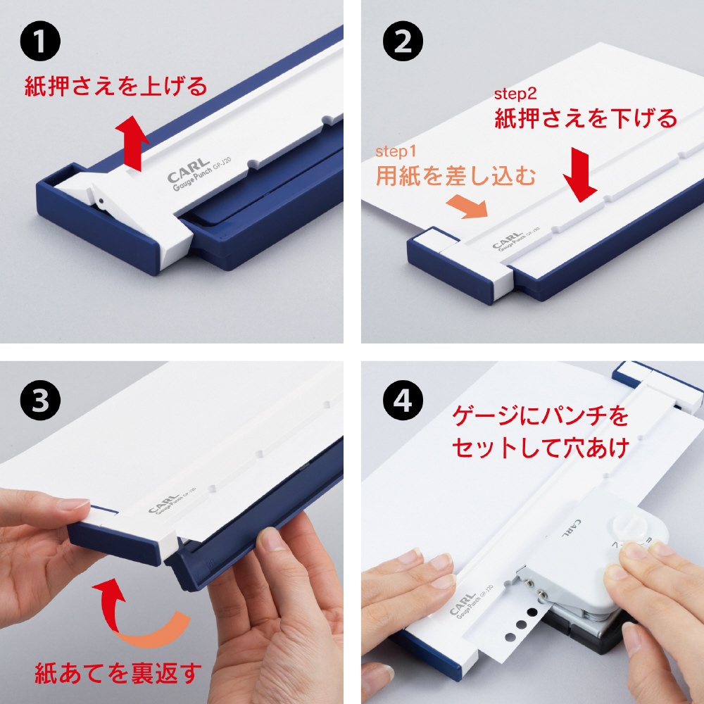 ゲージパンチを使用すれば、誰でも簡単にサクサクと穴をあけることができます。