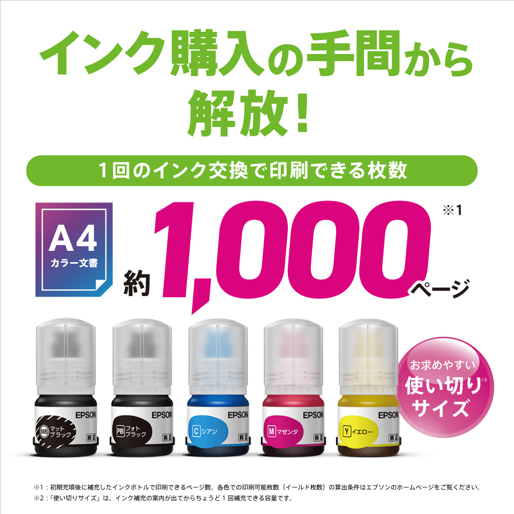 低印刷コスト&大容量インク。5色インク搭載で写真も文書もお得に 家族で使えるスタンダードモデル。