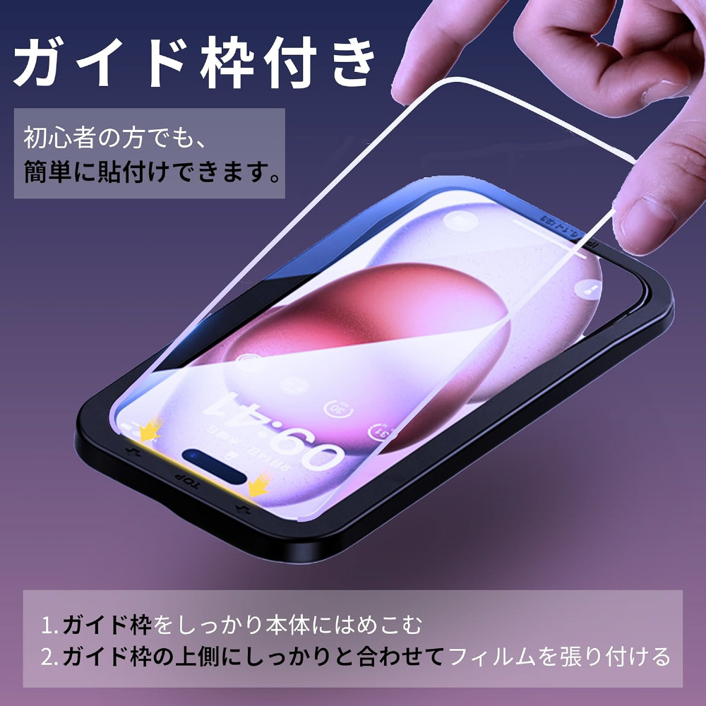 2.5D 3ストロング 反射防止保護ガラス for iPhone 15 Plus / 16 Plus ガイド枠付 HW-AGG16BPL
