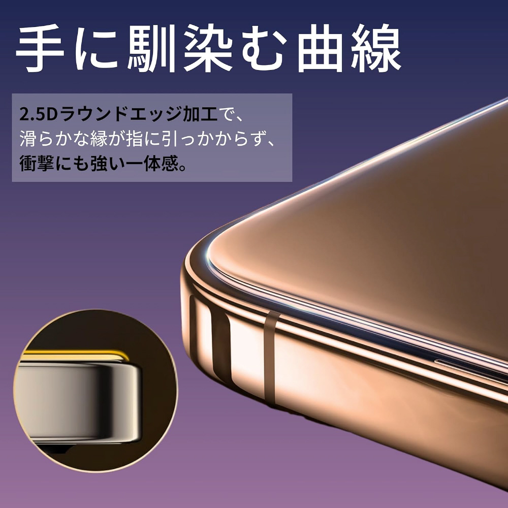 ■2.5Dラウンドエッジは、スマホの湾曲部分にピッタリとフィットし、ケース装着も問題なし