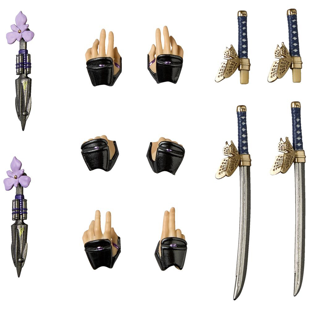 ボディラインにフィットした近未来的な忍者スーツ姿のしなやかなプロポーションを、リュウ・ハヤブサと並んだ際の体格差なども意識したサイズで造形。