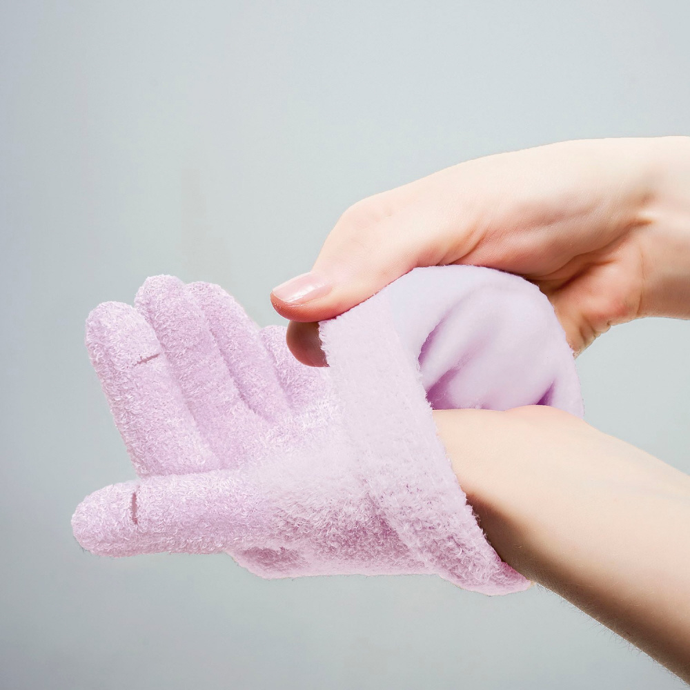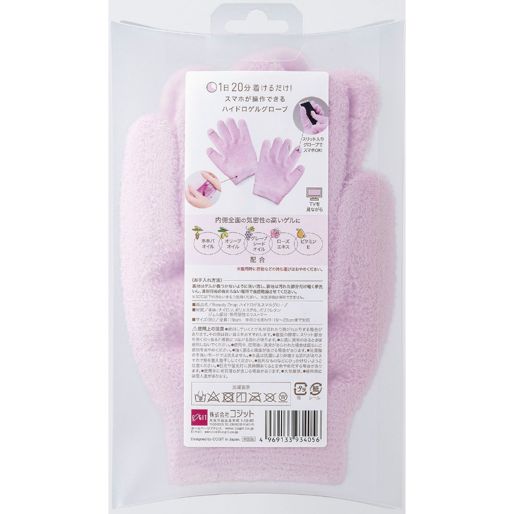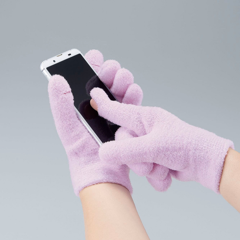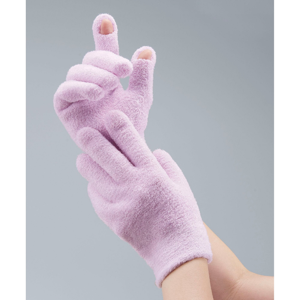 1日20分!スマホが操作できるハイドロゲルグローブです。人差し指にスリット入りでスマホの操作がしやすいです。待ち時間も退屈せずに過ごせます。内側全面の気密性の高いゲルに、ホホバオイル・オリーブオイル・グレープシードオイル・ローズエキス・ビタミンEが配合されています。ローズを基調としたほんのりアロマの香りで癒されます。表地も裏のゲルも伸縮性が高いので着脱がラクで、手にしっかりフィットします。表地は手触りの良いパイル生地で手洗い可能なので清潔にお使いいただけます。【仕様】【適応サイズ】手のひらまわり:19〜23cmまで対応【サイズ】全長:19cm、横幅:15cm、切り込み:1.5cm、指先から切込みまで:2.5cm、手首のリブ:4cm【お手入れ方法】裏地はゲルが傷つかないように洗い流し、表地は汚れた部分だけ軽く手洗いし、直射日光の当たらない場所で自然乾燥させてください。※30度以下の冷たい水をご使用ください。※洗濯機は使用できません。※着用中に荷物などの持ち運びはおやめください。