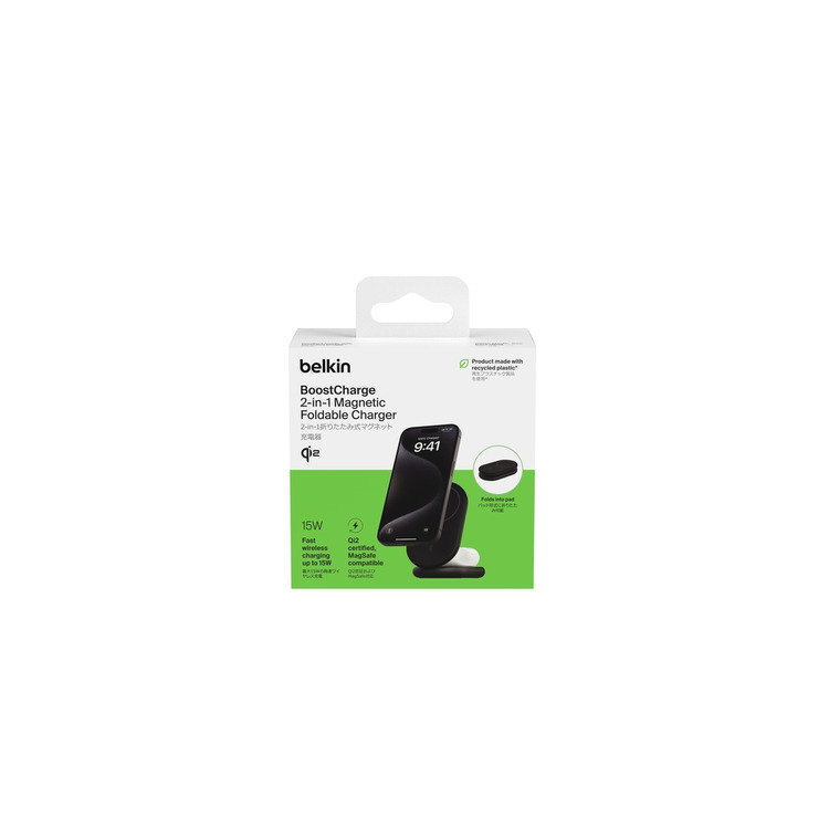 BoostCharge Qi2 2-in-1 折りたたみ式ワイヤレス充電器 ブラック WIZ028QCBK [2ポート /15W]
