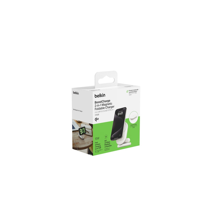 BoostCharge Qi2 2-in-1 折りたたみ式ワイヤレス充電器 ホワイト WIZ028QCWH [2ポート /15W]
