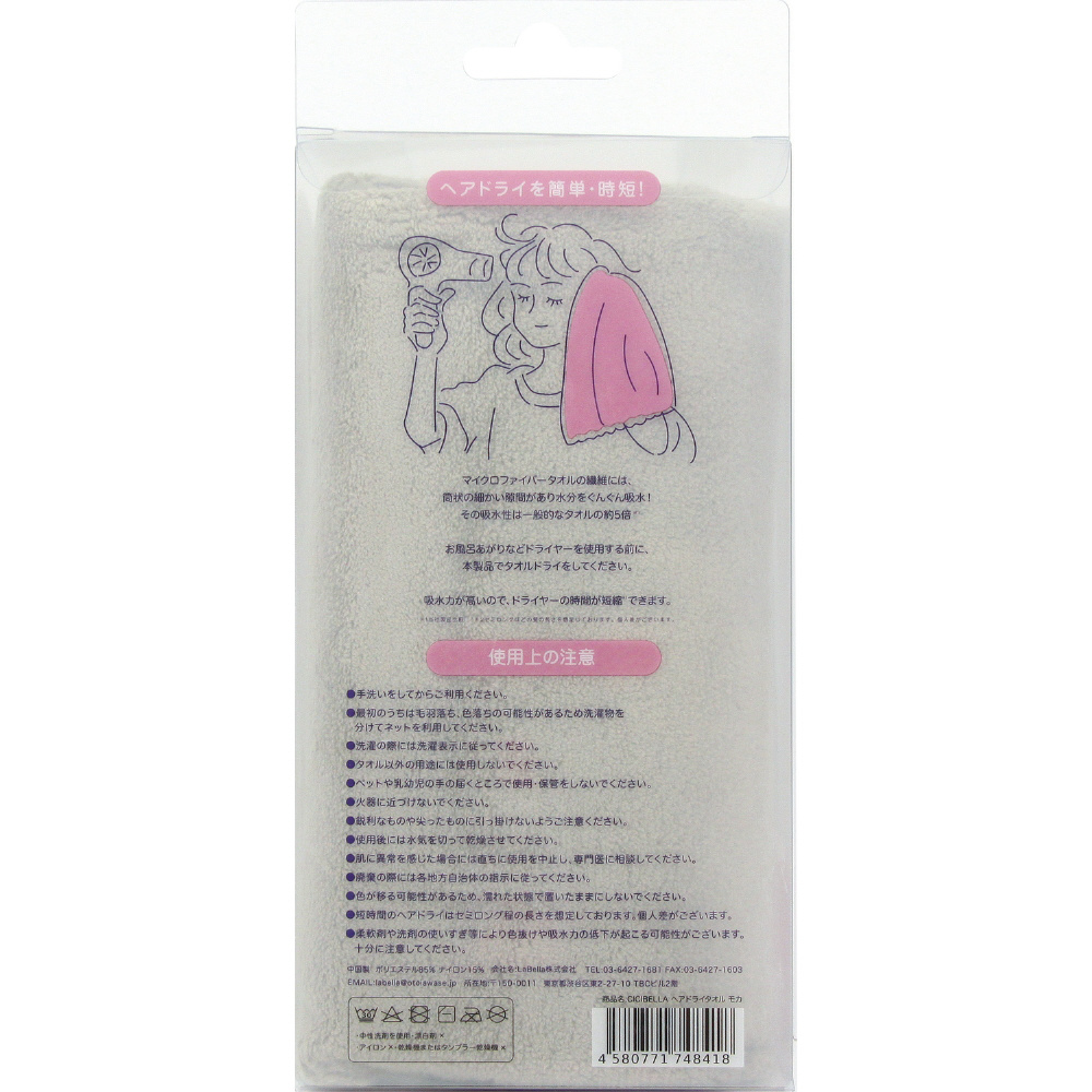 ふわっふわで柔らかい厚手の生地が髪の水分を素早く吸収。高吸水素材なので、毎日のヘアドライ時間がグッと短縮。