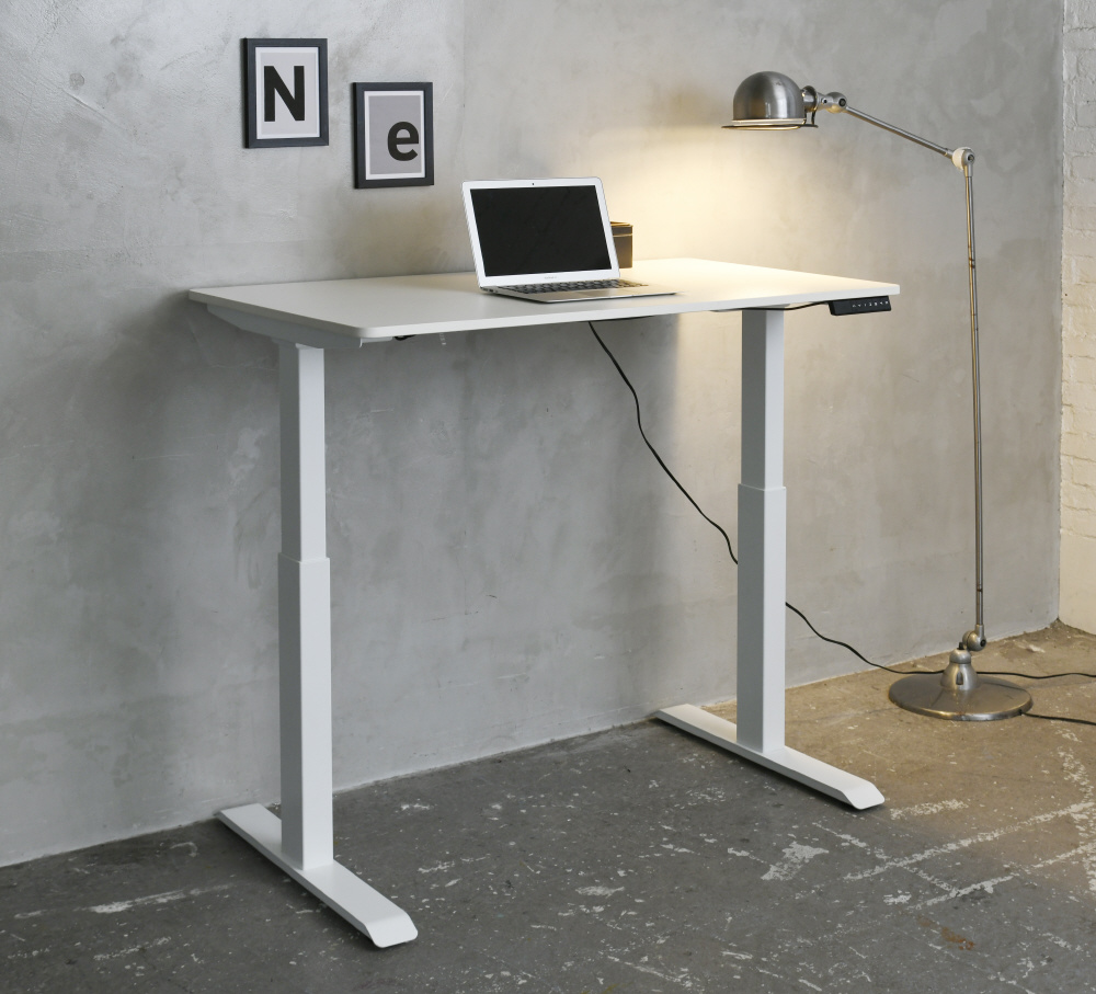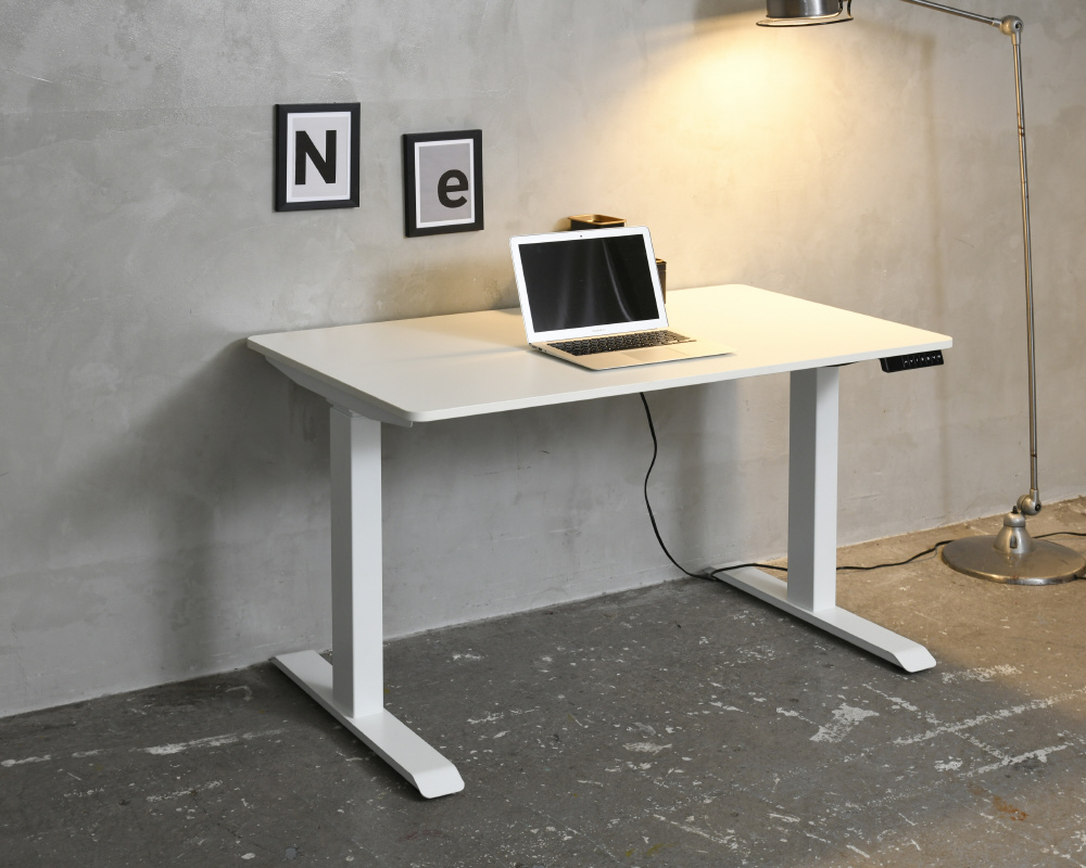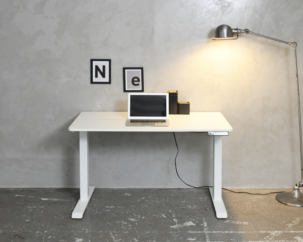 脚部のモーター上下させることで、天板が昇降するデスク。電気の力で上下させるので、ボタン1つで簡単に昇降可能!