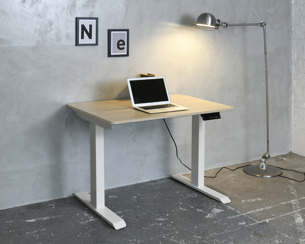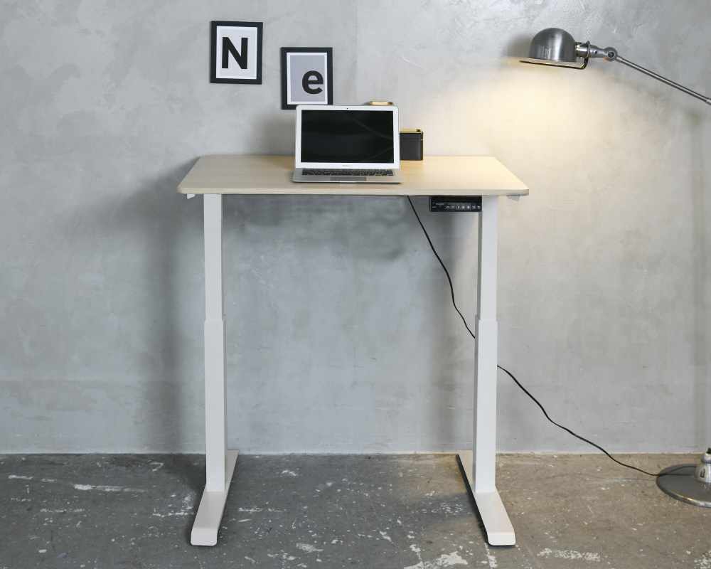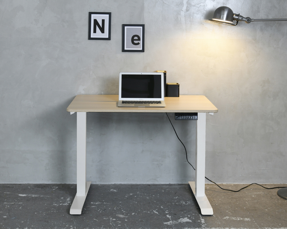 電動昇降デスク [W1000xD700xH710〜1170mm] スタンダード マットホワイトx天板:ナチュラルウッド ELD-FS(MWH)/T1000(WN)