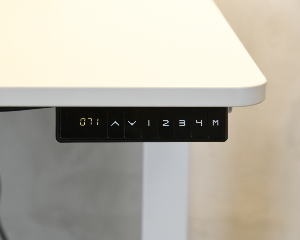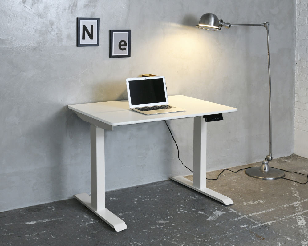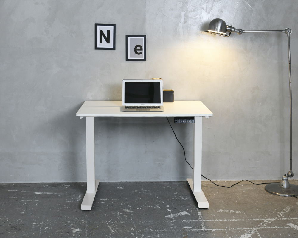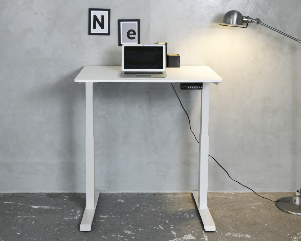 脚部のモーター上下させることで、天板が昇降するデスク。電気の力で上下させるので、ボタン1つで簡単に昇降可能!