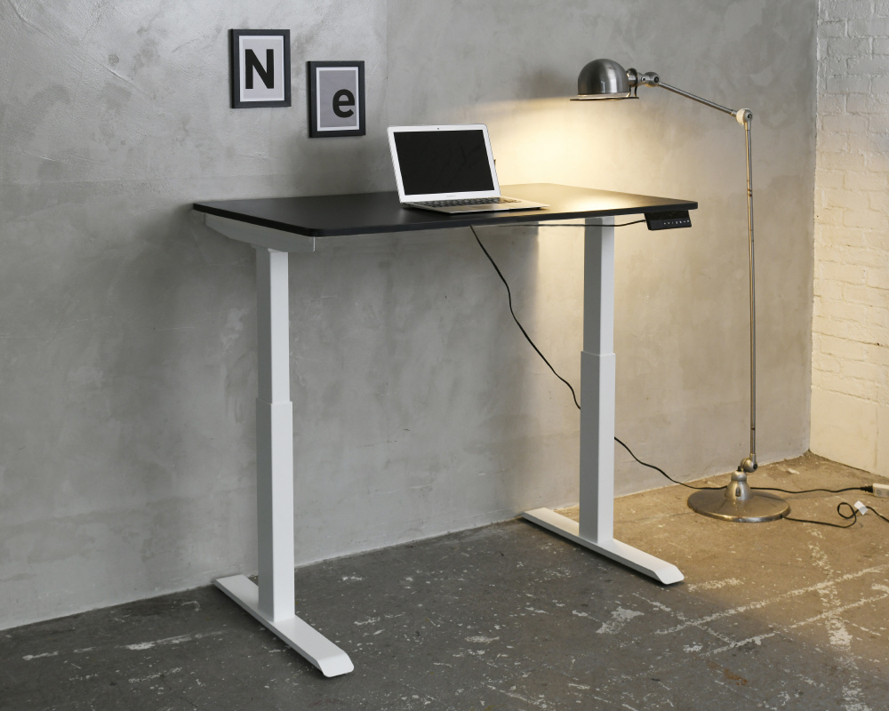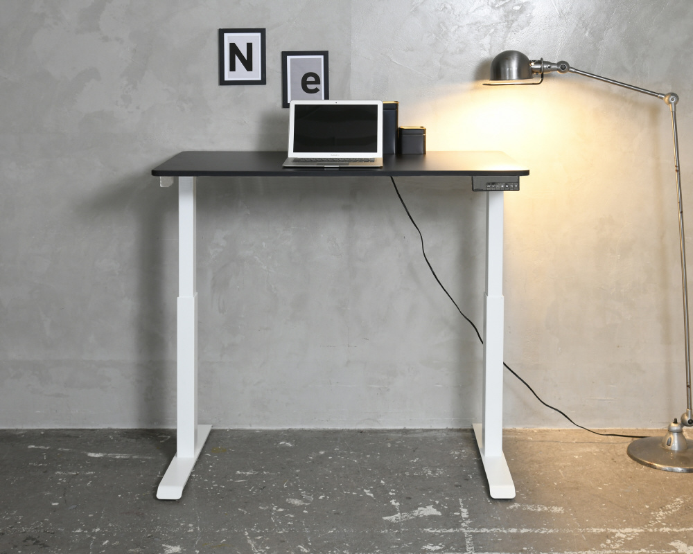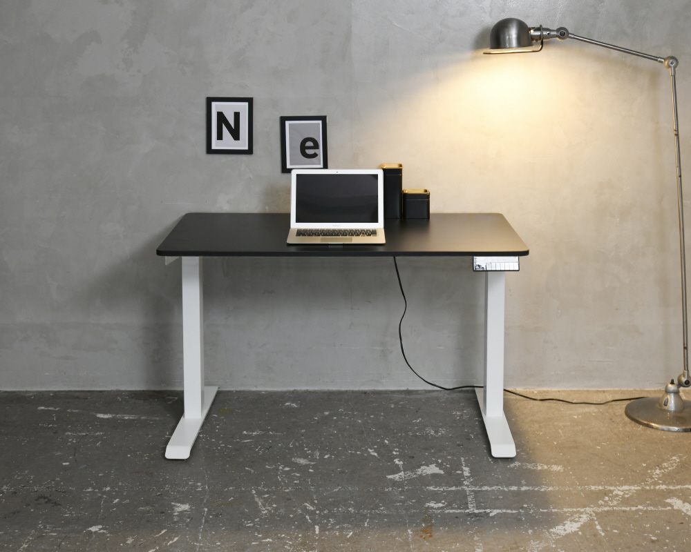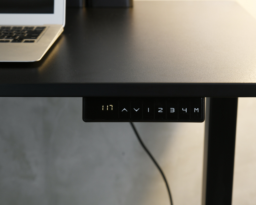 脚部のモーター上下させることで、天板が昇降するデスク。電気の力で上下させるので、ボタン1つで簡単に昇降可能!