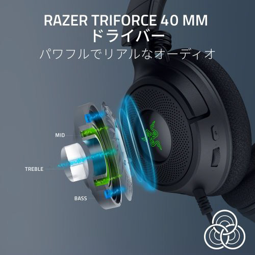 Razer Chroma RGB 対応の有線式ゲーミングヘッドセット、Razer Kraken V4 Xで鮮やかなサウンドが体験できます。USB C と USB A への対応と共にアップグレードされ、お気に入りのすべてのプラットフォームで、ゲームへの没入感を新たな高みへと導きます。