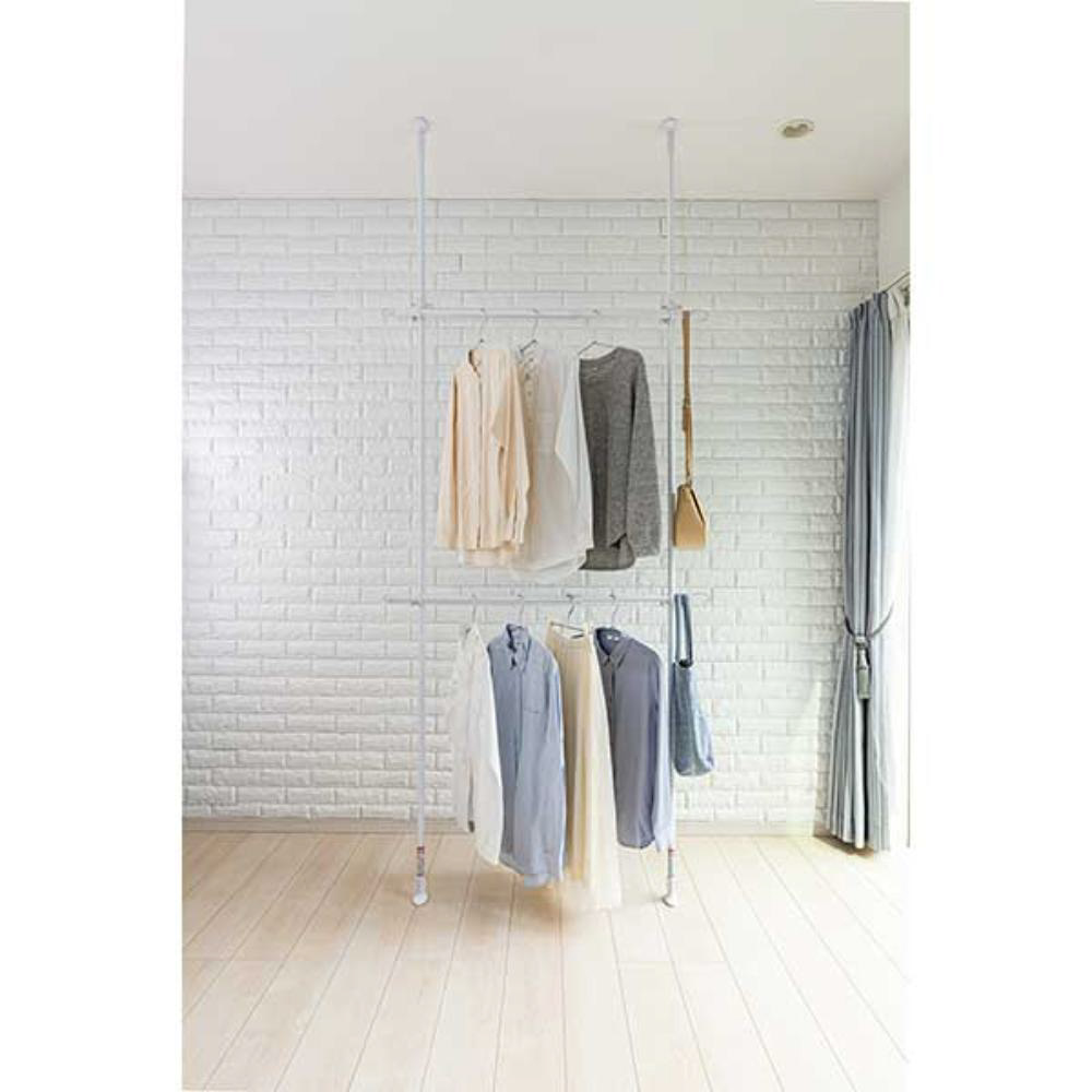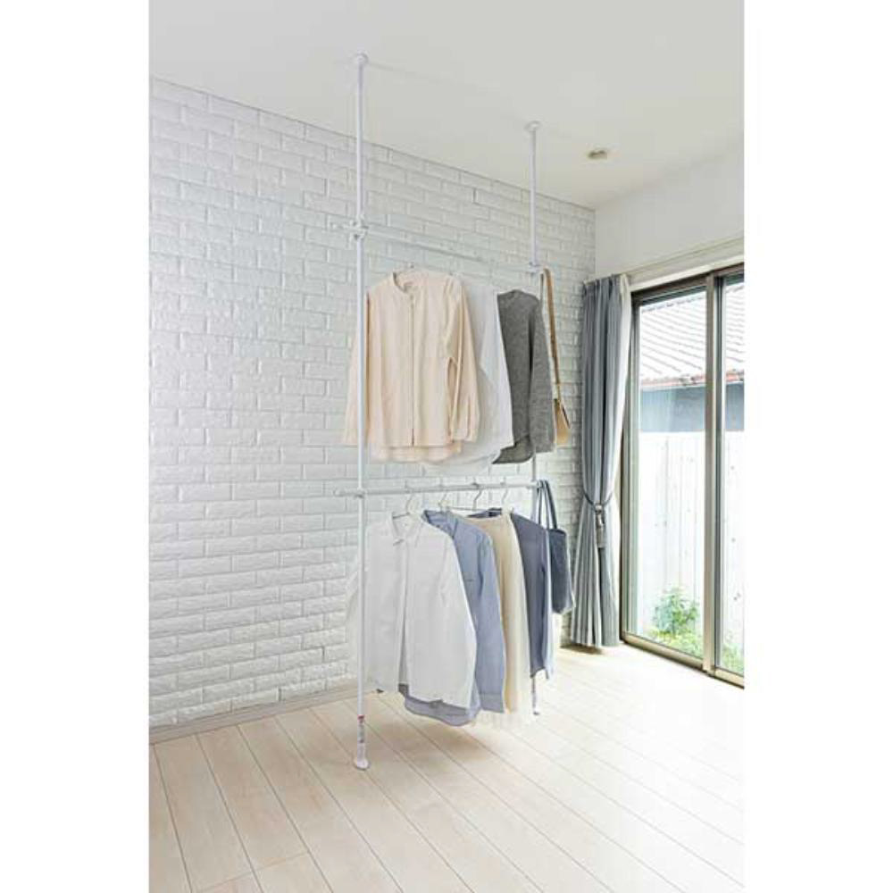 2段で衣類をたっぷり収納できる!天井につっぱって収納。