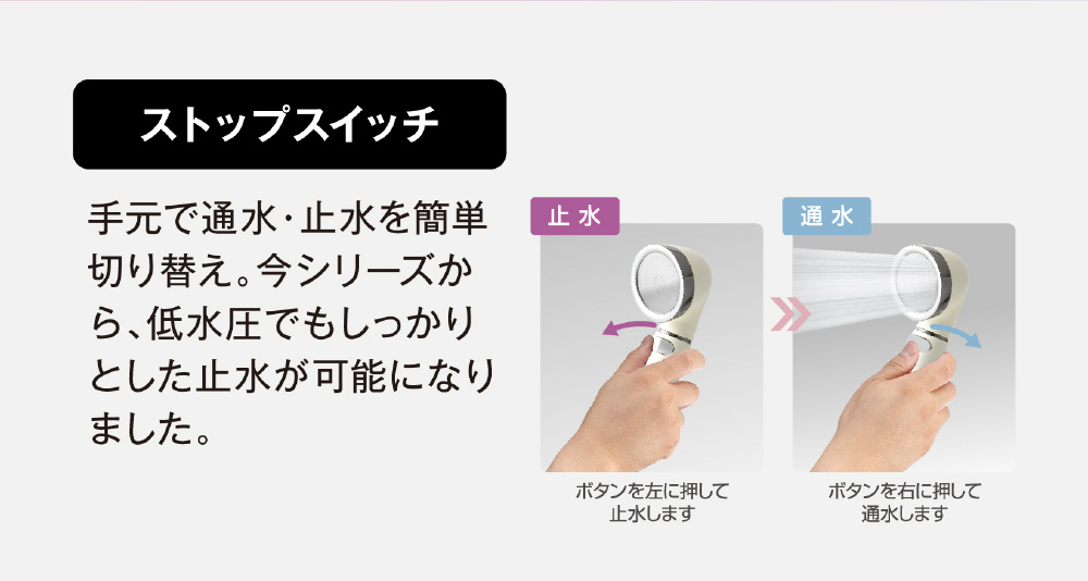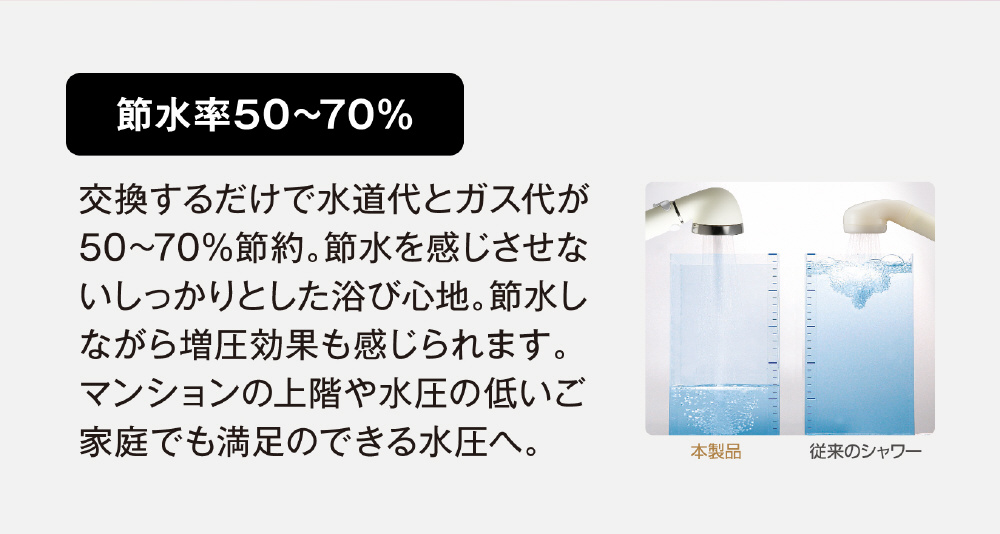 節水率最大50〜70% 増圧。安心ストップ機能。流量調節機能。