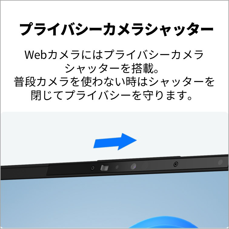 Webカメラにはプライバシーカメラシャッターを搭載。使わない時はシャッターで閉じてプライバシーを守ります。