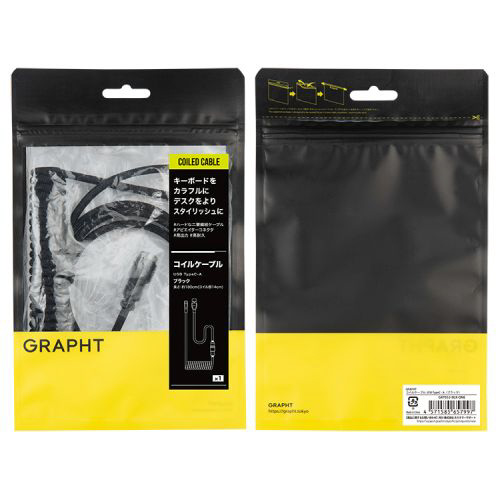 キーボードケーブル [USB-C ⇔ USB-A(PC側) /0.34+1.5m] コイルケーブル ブラック GRT053-BLK-ONE
