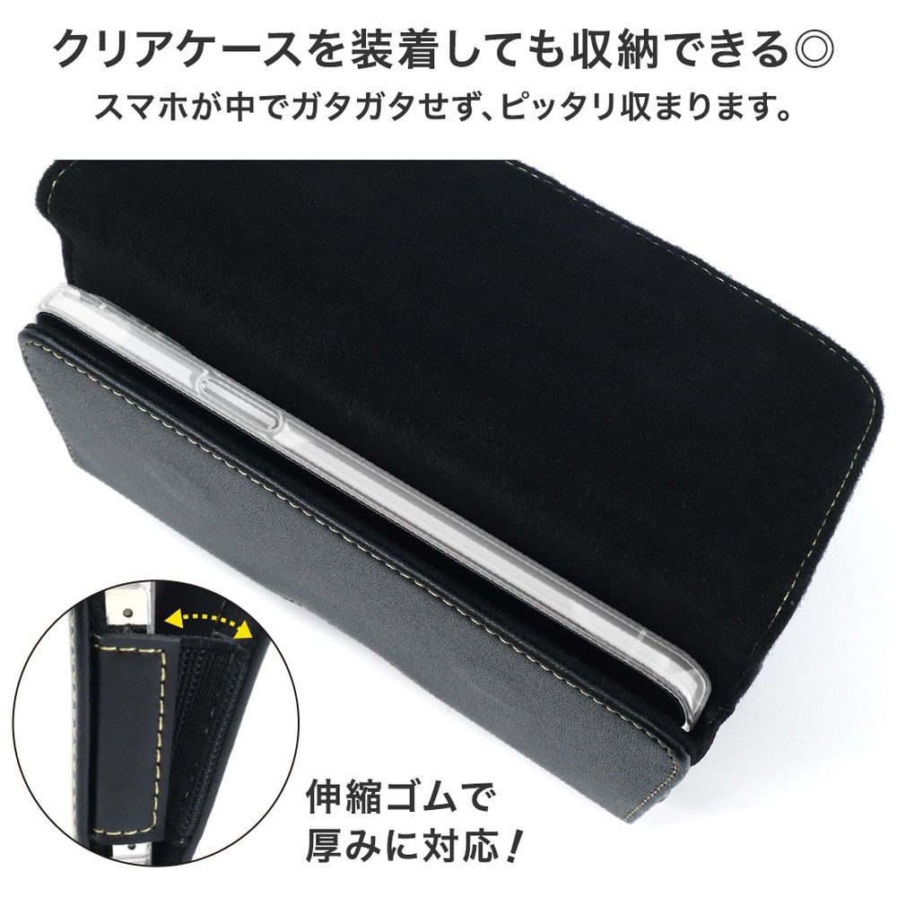 ※本体全体を被うタイプのレザーケースや凹凸のあるカバー・バンパーなどをご使用の際、本品に収納できない場合があります。