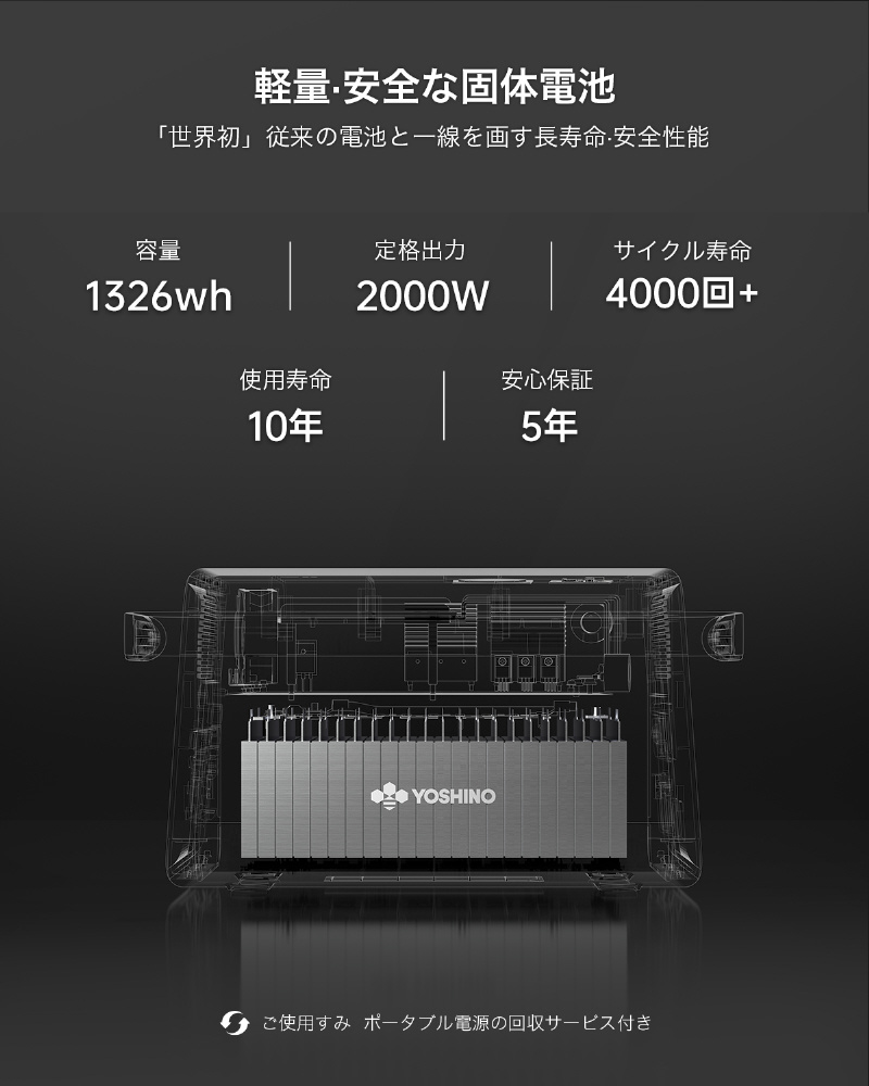 ■YOSHINOの固体電池によって高性能かつ圧倒的安全性を実現。