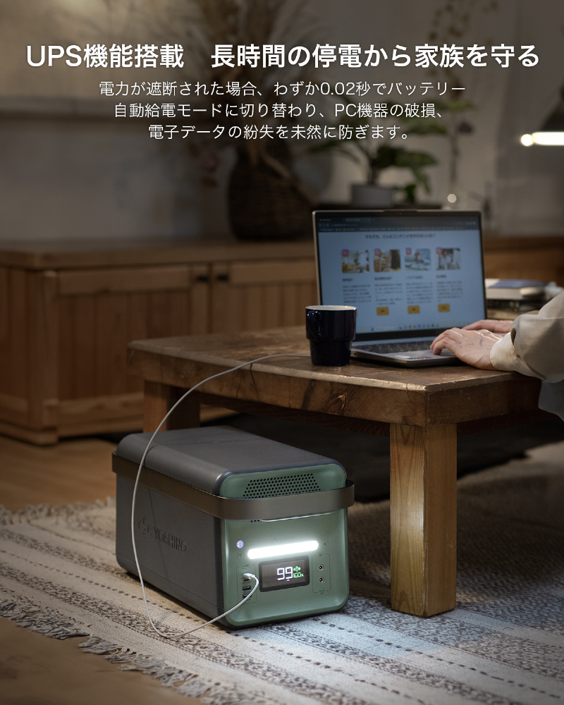 | 商品名 | ポータブル電源 YN-B2000-SST [固体電池 /11出力 /AC充電・ソーラー(別売) /USB Power Delivery対応] |